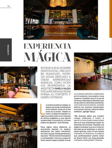 Arquitecta colegiada con 20 años de experiencia en proyectos de arquitectura y diseño interior. Experiencia en los rubros de construcción, visual marketing, conceptualización de espacios, colorimetría, diseño de muebles e implementación de diseño interior.